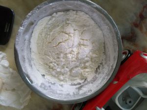 奶粉,土豆淀粉,泡打粉,低筋面粉过筛备用