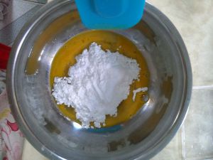 糖粉加入蛋液中搅拌均匀