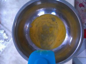 鸡蛋用刮刀捣均匀