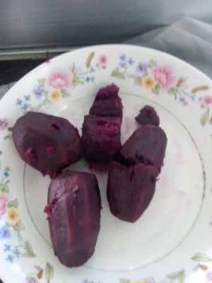 把紫薯放在锅上蒸40分钟。