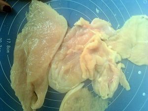 鸡胸肉用刀背拍扁,放入调料冰箱腌制一晚