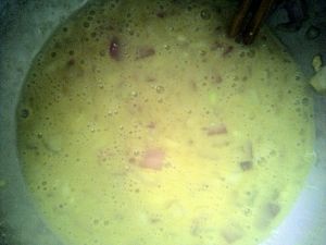 搅拌均匀,如图,然后把切好得肉放在蛋液中腌制20~30分钟