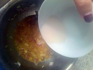 准备一个大点得盆子,在里面加一个鸡蛋,少许姜末和洋葱碎,还有盐鸡精十三香少许