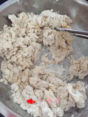 等红糖水凉成温的就能多次少量的导入面粉搅拌成絮絮