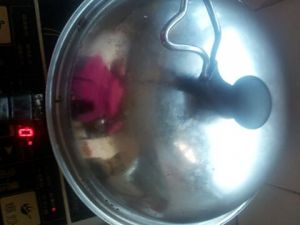 锅里倒适量菜籽油,油温6层热下蒜泥炒(烧蒜泥的一定要用菜籽油勺才好吃)