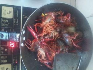 放入生猛的小龙虾,迅速翻炒,直到全部失去生命迹象。