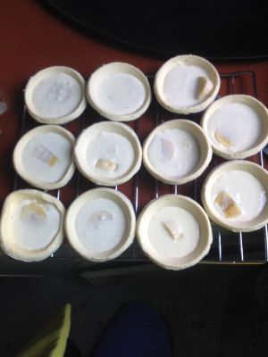 、如果很多人想吃水果味道的蛋挞,请在探讨烤制完毕之后,把水果放上去就可以了。