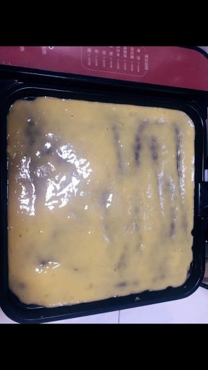 刷一层薄油,把糊倒入面饼档铺平,薄薄的一层,(没有面饼档可以不沾锅小火)