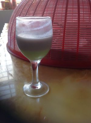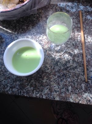 搅好了,最好过滤一下,里面会有颗粒在里面,影响口感,做出来有点甜,不喜欢甜的朋友就加点水吧。
