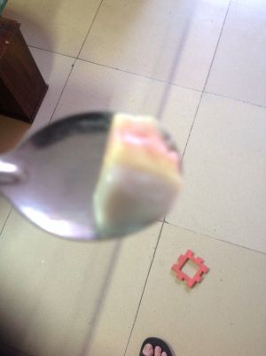 先将草莓味的放进微波炉里加热一分钟,然后是青苹果味,再是柠檬味。大概就是这样的,会比图片多一点水。(由于做的时候忘记拍照,所以这是网上的图片,请见谅)
