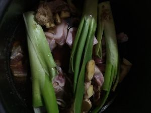 羊排洗去血水,切成小块放入电压力锅内。加入葱、姜、料酒,生抽、水(水量将将末过羊排就好)和孜然粉(根据自己喜好,爱吃你就多放点儿),选择排骨键煮熟。