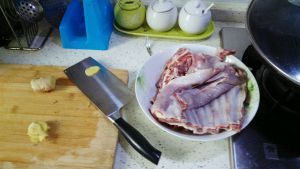 将买好的羊排洗干净,不要留水。用刀将排骨那边划开比较方便吃,准备好生姜,葱,切成丝。羊排我做了刀插,就是用小小的尖刀对厚的地方还有表层戳戳,这样腌制会更入味。
