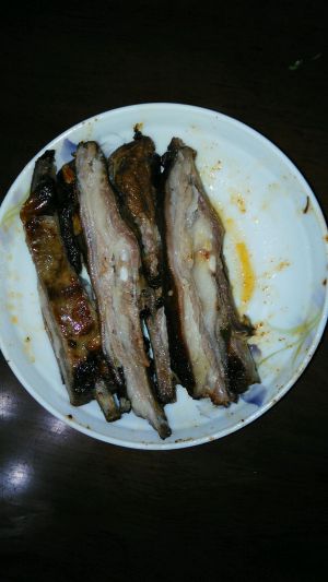 羊排刷油,放置光波炉,我家是格兰仕的那种光波微波一体的,很方便,大约25分钟。中途翻一次,保证均匀。