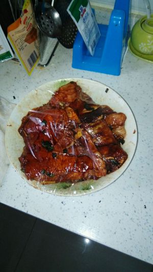用保鲜袋密封保存放入冰箱内冷藏,我冷藏了两天一夜,一天一夜也可以,时间越长味道越好,因为老公过生日所以早两天腌好入味,