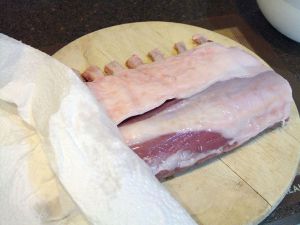 淋干水分,用刀在羊排切斜刀或用牙签扎孔,为了入味