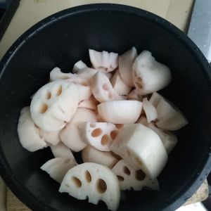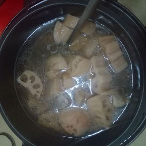 莲藕,玉米,姜,大蒜切块,放入红枣,八角,盐,酱油,鸡精