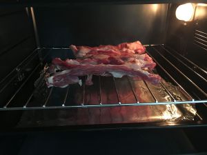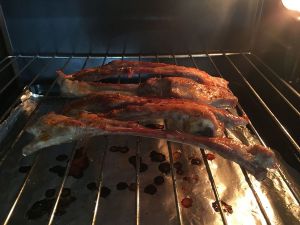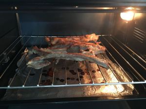将腌制入味的羊排放入烤箱中层烤架上,烤架下面放烤盘接住羊排滴下来的油脂,考盘上可以放一张锡纸为方便清洗烤盘。200度烤10分钟,然后230度在继续烤20分钟左右。