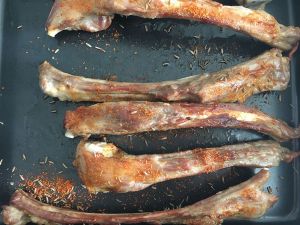 捞出羊排凉凉均匀的涂抹上生抽和盐。