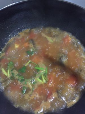我是耐着性子炖了四个小时,番茄完全炖化,呈番茄酱状,快起锅时加入切成段的葱稍微煮一下,加盐调味,出锅,端上桌前撒一点葱花