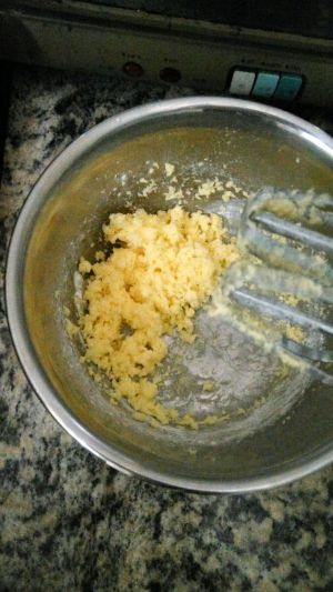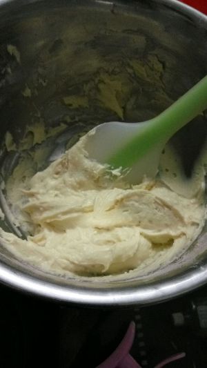 准备所有材料 1.☞黄油提前温室软化☜ 2.将糖粉倒入软化的黄油里用电动搅拌器打致微发。