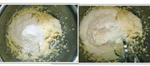 黄油软化打发,加入糖粉搅匀再次打发,加入蛋黄打匀