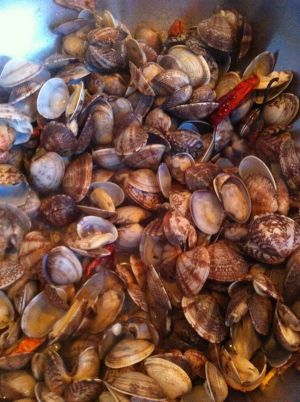 身在北方的我,想念南方海鲜大排档,去市场买了点正经花蛤,一斤左右,老板看我帅气,送了几只虾,清洗干净备用!