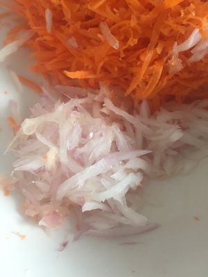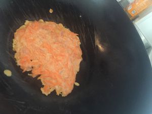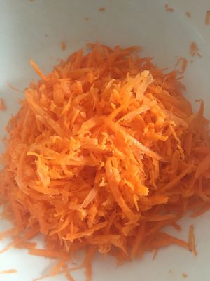 1根胡萝卜洗净去皮,用擦丝板擦胡萝卜丝。