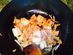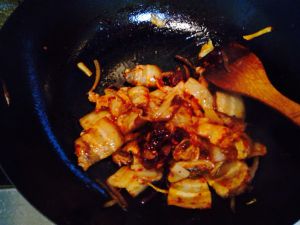放入辣白菜翻炒