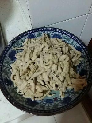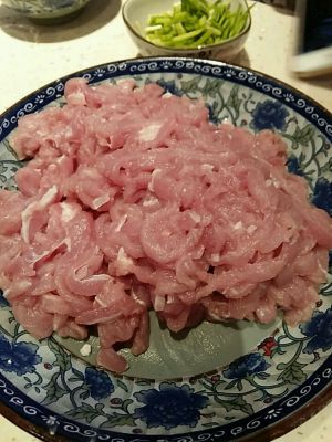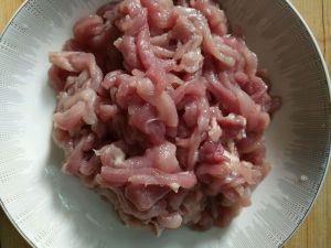 里脊肉切丝用料酒,少量盐,蛋清和淀粉抓匀待用