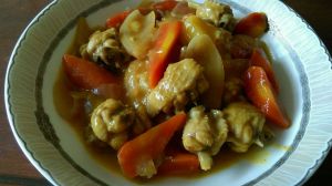 锅内放油,油热后,下鸡翅,翻炒几下,颜色变了加胡萝卜翻炒,加水,煮十来分钟后下土豆个洋葱,煮到土豆熟了,汤汁也不是很多的时候,下好侍咖喱,搅拌至融化。关火