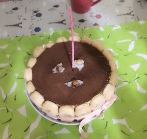 冰箱取出后脱模,用筛子洒上可可粉,美味的提拉米苏就完成啦