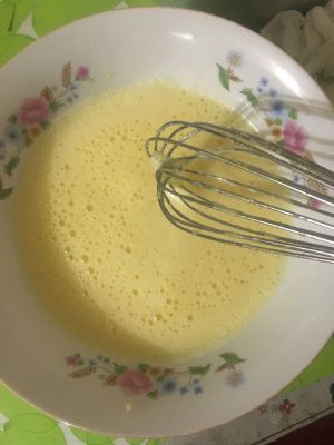 蛋黄搅拌均匀加入沸腾的糖水,要慢慢的倒,越细越好,一边加入糖水一边搅拌,