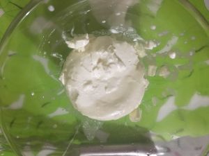 当芝士糊冷藏到质地变得浓稠的时候,就可以进行下一步了。
