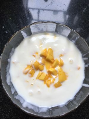 最后把之前留的芒果粒放上去, 我不会摆盘,吃起来太棒了,不用担心里面芒果不够多