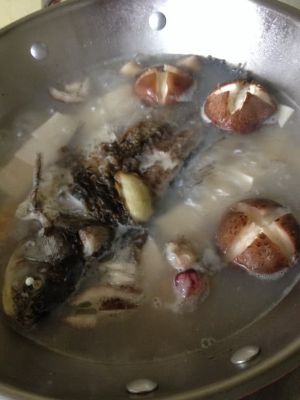 1,买新鲜的鱼,处理干净。 2,准备好葱姜蒜 豆腐 香菜等备用。 3,料酒 姜 少量盐,腌制鱼20分钟左右 4,热锅冷油 放入姜蒜煸炒出香,放入腌制好的鲫鱼 5,翻炒两面稍黄即可,加入适量冷水 6,放入香叶 八角 桂皮 葱等,大火熬制 7,汤煮沸之后,加入豆腐,继续熬制 8,等汤呈奶白色之后,放入香菜。 9,出锅 饮用