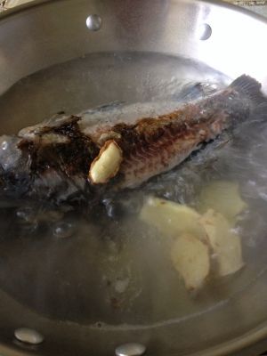 另起一锅煮开水后把煎好的鲫鱼放入,大火熬五分钟