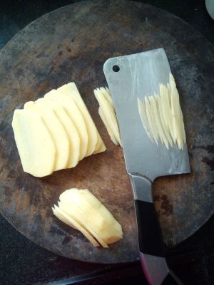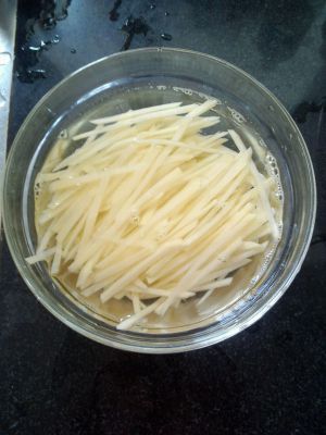 土豆切丝,因为本人刀功甚是不堪入目,所以我用了叉子。