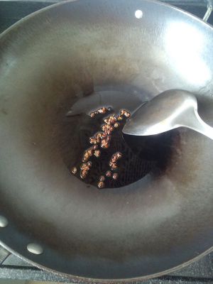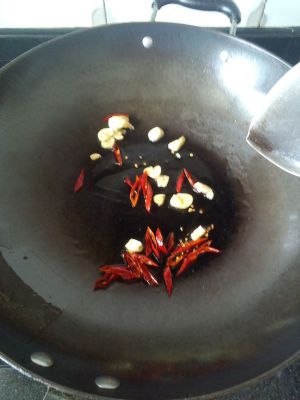 锅烧热加油,放几颗花椒炝锅,加入大蒜大葱翻炒
