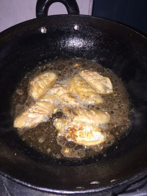 锅里放油,放入鸡翅炸,过几分钟到酱油少许