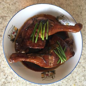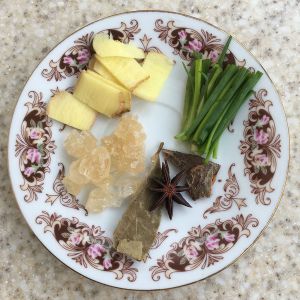 鸭翅根去除杂毛洗净,放入冷水锅中加入姜块,料酒煮开后,转中火再煮20分钟