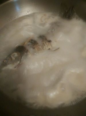 一次加足冷水,大火烧开后10分钟待鱼汤发白后下豆腐块,然后小火煲40分钟。最后加盐和胡椒粉调味即可。