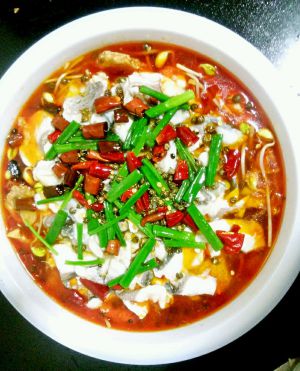 另起锅放油烧热,放入花椒、辣椒,淋入煮好的鱼片中即可食用