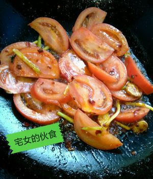 红油煸出后放入蕃茄。