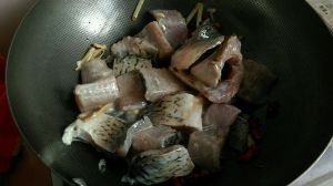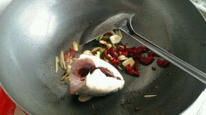 开始放入葱姜蒜煎下鱼头