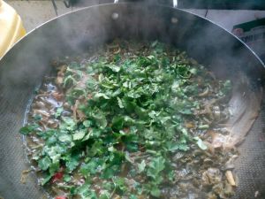 锅里倒油,放筷子起小泡后倒入准备好的葱姜蒜辣椒八角花椒翻炒~