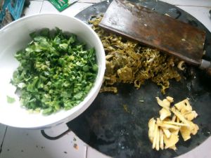 加入酸菜和野山椒(想辣点的就把野生椒切开)这个咸酸菜是一位农家伯伯自己做的,味道特别好