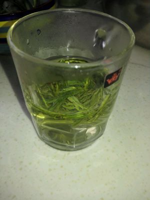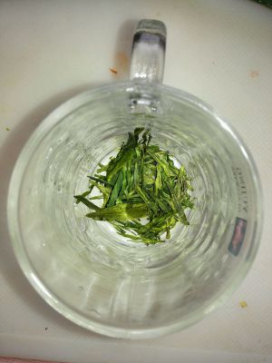 准备适量龙井茶,放放杯中。