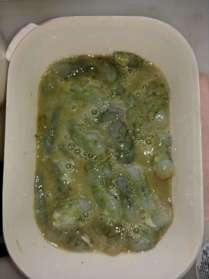 虾仁加盐、黄酒、淀粉上浆腌制,加蛋清颜色会更好看,这次做的没有加蛋清,上浆过程影响虾仁的口感,用手不停一个方向搅拌摔打虾仁,确保所有虾仁都挂上浆。