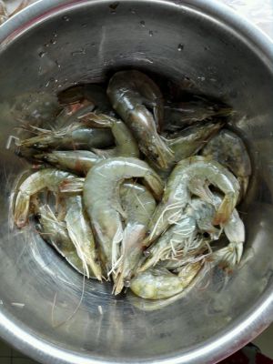 准备虾数只,去虾头,挑虾线,备用。