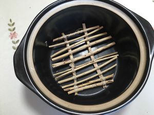 我怕肉在砂锅底部粘锅 用柳树枝做了个笼屉放在下面垫上